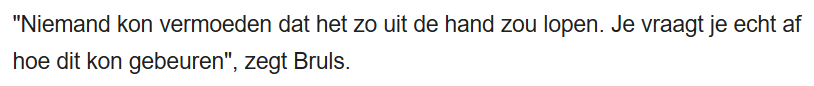 “Niemand kon vermoeden dat het zo uit de hand zou lopen. Je vraagt je echt af hoe dit kon gebeuren”, zegt Bruls.